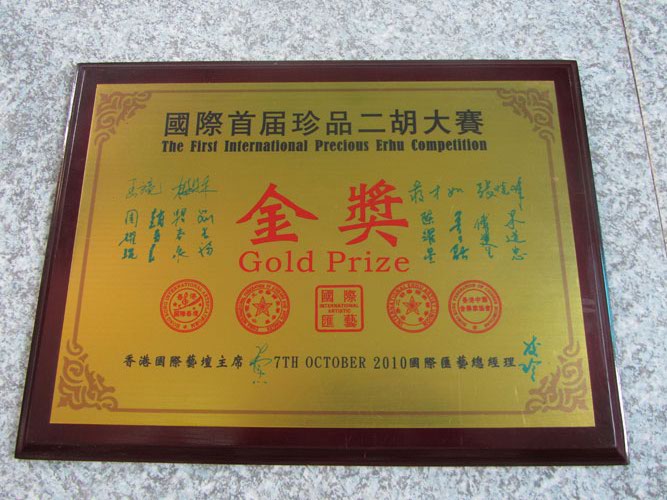 二胡制作大師丁家彭先生1949年出生樂器世家,17歲隨其祖父學琴藝,并深得精髓,其聰穎好學,悉心鉆研與 探求二胡制作,博得同行的欽佩贊許,更得了許多知名演奏家的稱贊,充分認識到二胡制作每個環節,都對二胡制作都有影響力,因此對二胡的選材,選料,蟒皮都十分嚴格,二胡整體穩定性良好,環境干擾影響極小。